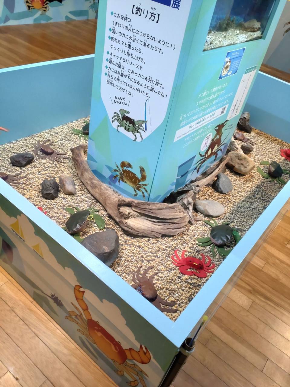 写真は少し前のものですが、わかりますか?1枚目の写真、こたつとミカンと、ミカンと戯れる、ミカン色の魚!展示方法も試行錯誤。そしてこの時のイベントがカニ展だったので2枚目の写真はカニ釣り☆よく見ないとフェイクとは分からないほどのクオリティ!小さい子供たちが楽しんでいました♪