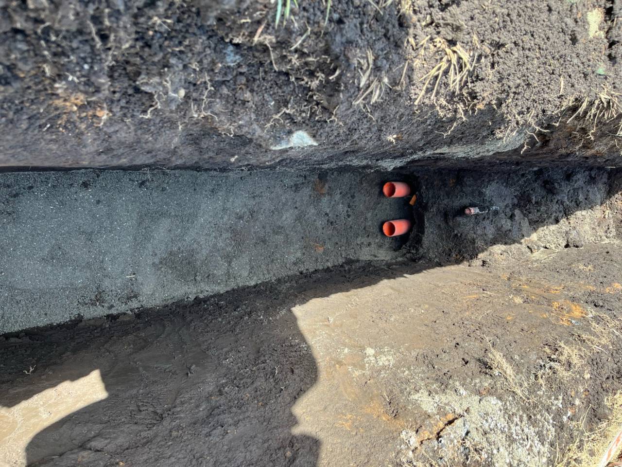埋設配管 2023/08/07 埋設配管 サブタイトル またまたやっていますよ、電気の埋設配管です。今回は初めて使う配管で1本が5mあるんです。普段使用している鉄管は基本的に3.66mなのであっという間に延びていきます。土木屋さんの仕事が早いのでなかなか写真を撮るタイミングがありませんでしたが何とか撮影成功しました☆新しい道具も楽しいですが、新しい材料を使うもの勉強になりますね♪次は新しい仲間が増えるといいですね!待っていますよー♪