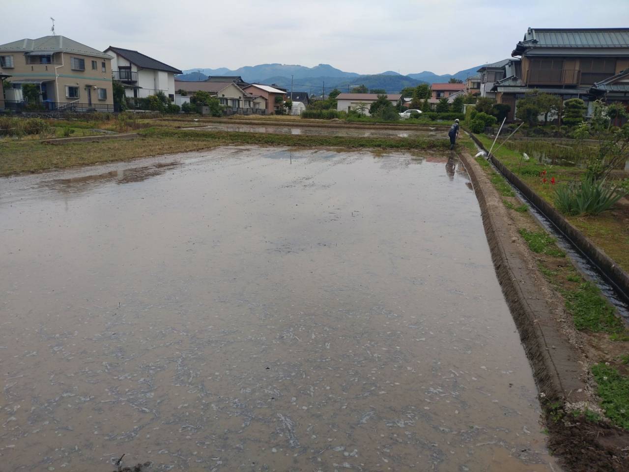最近田植えが終わった田んぼをよく見かけるようになりました。皆さんも稲作には田植えや稲刈りが必要なのはご存じですよね。しかし米作りは「八十八の工程があるから米という漢字になった」とも言われています。田植え前にすでにかなりの工程があることをご存じですか?土作りや種まき、田んぼの周りに綺麗に土を盛り「くろ」というものを作ります。ここまでは私も参加したことがなく、今回はその後「代搔き」です。