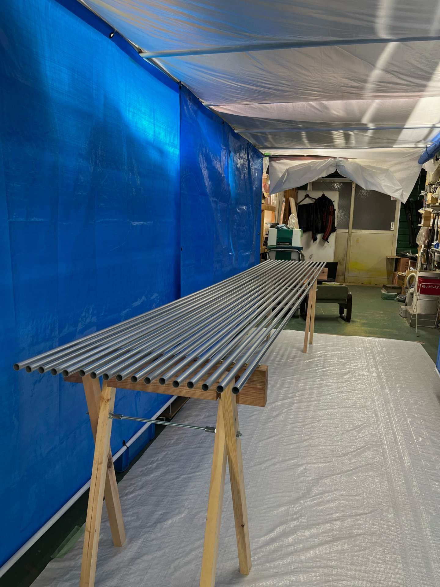 今回は赤坂にある現場で使う材料を塗装するために倉庫内にペンキブース設置!・・・と言ってもブルーシートと養生シートで作った簡易的なものなんですけどね。今まではこういう時にはハケやローラーを使…